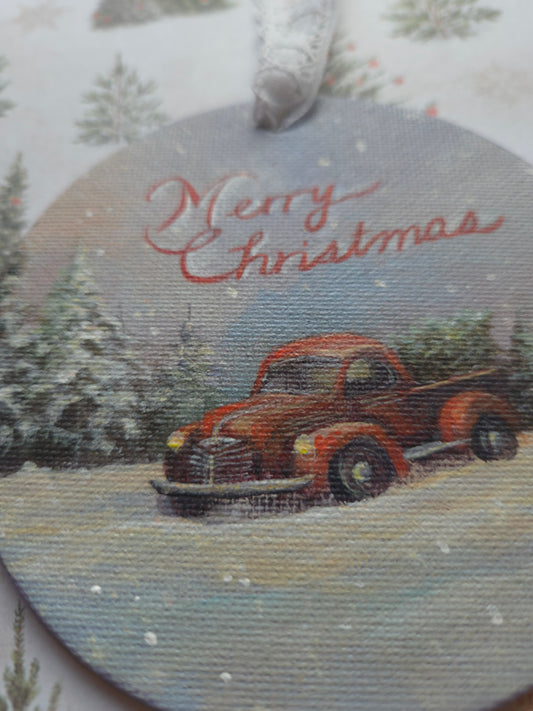Sold outLittle Red Truck | Canvas Ornament