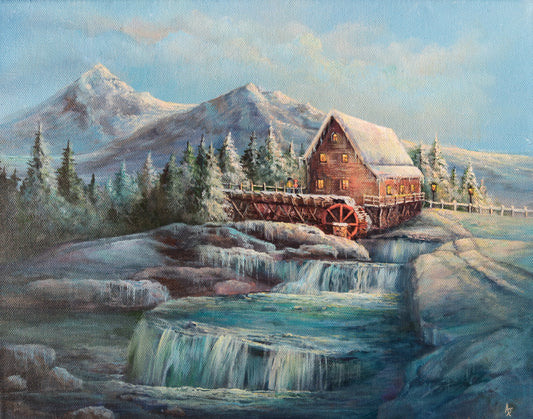 Winter Watermill | 11 x 14 Original Canvas Painting